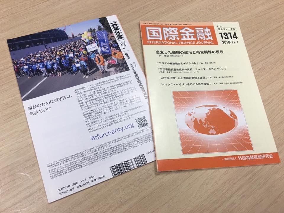 の機関誌「国際金融」1314号の裏表紙に、FITチャリティ・ランの広告を掲載し