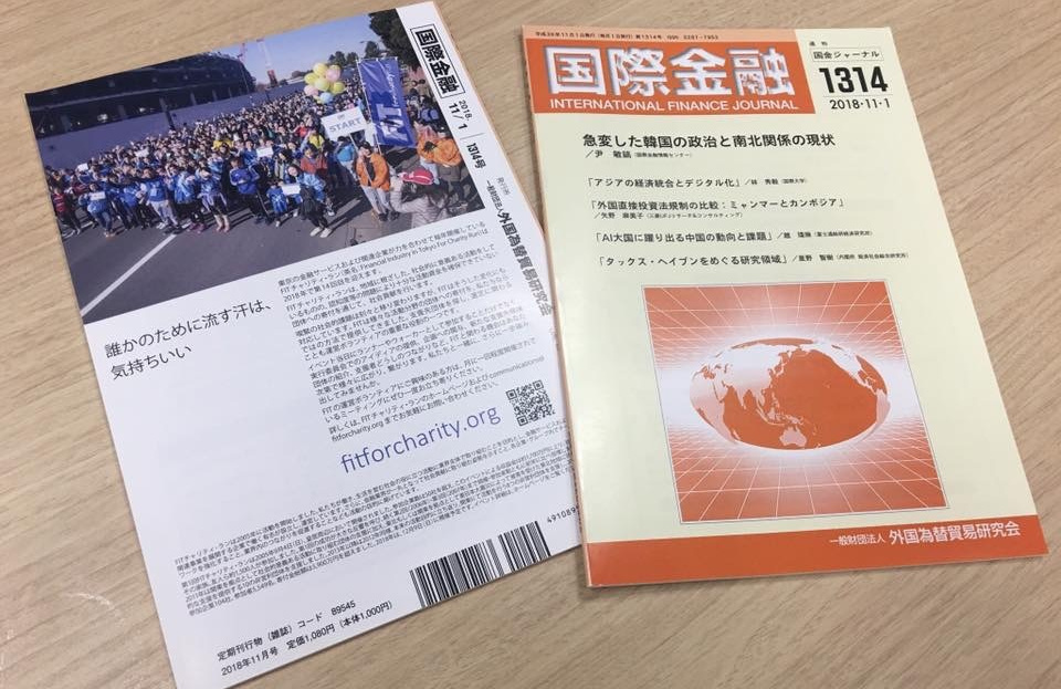 FITチャリティ・ランの広告が「国際金融」1314号に掲載されました2018/11/16 |