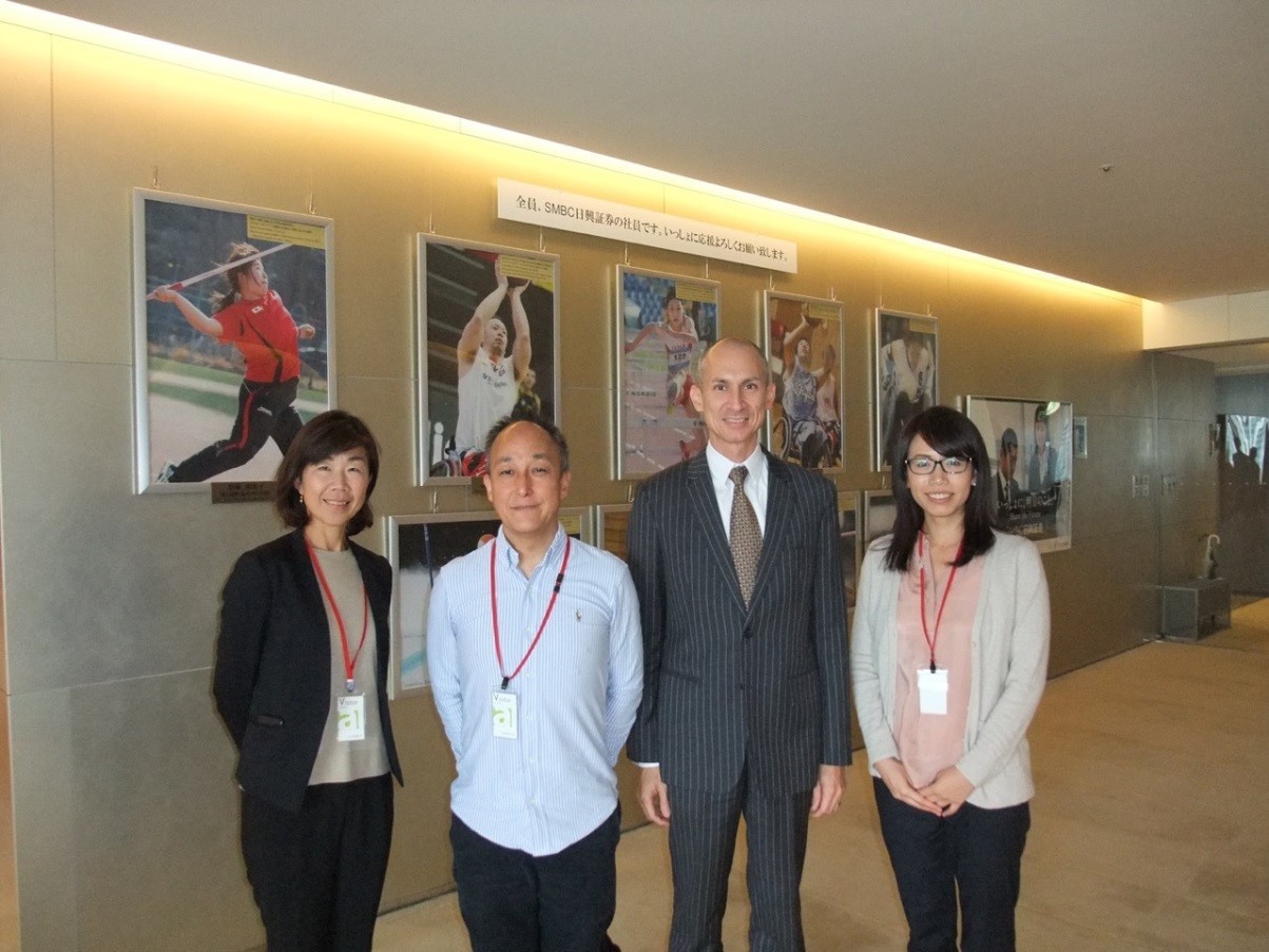 背景のSMBC日興証券の障害者アスリートの社員の内、4名はリオ・パラリンピックに出場。